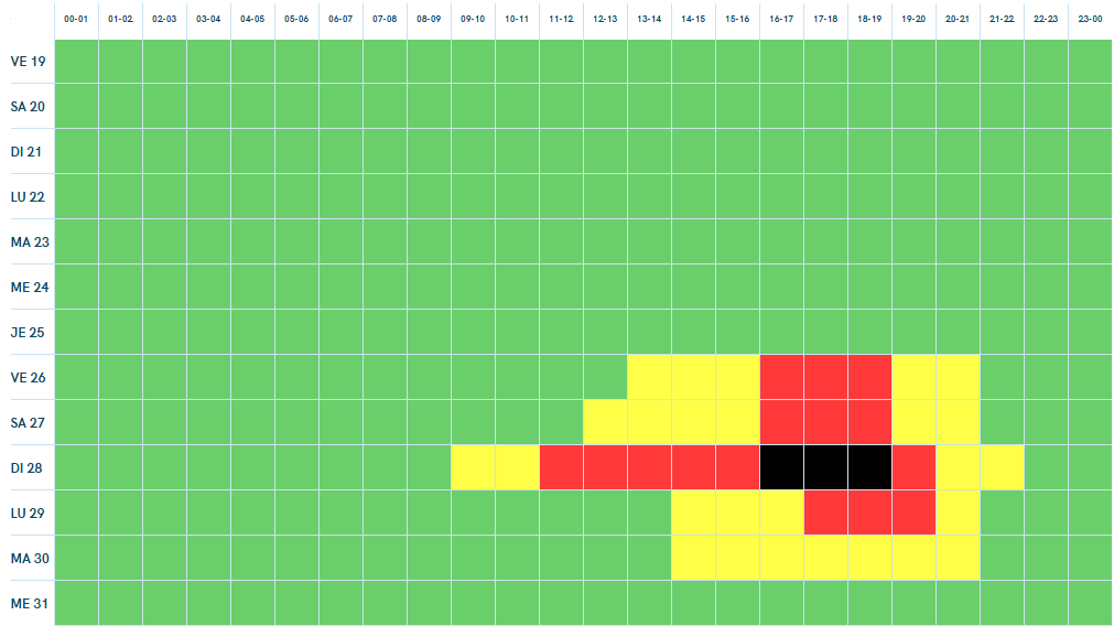 Trafic critique (prévision d’attente supérieure à 2 heures)