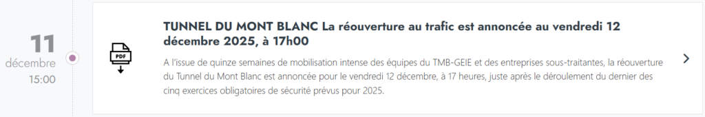 📅 12 décembre 2025 : réouverture du Tunnel du Mont Blanc