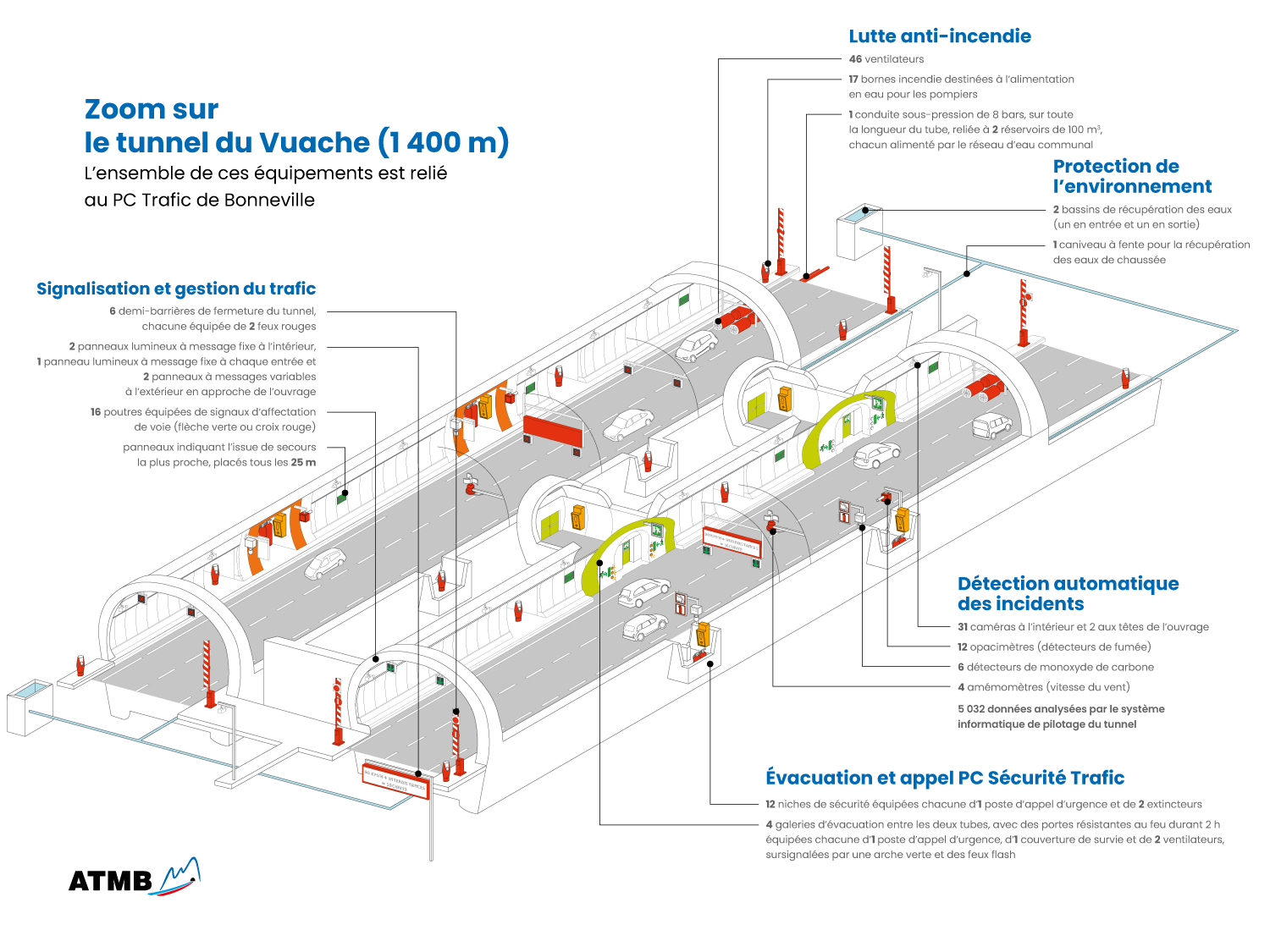 En mai 2024, ATMB a profité de la fermeture du Tunnel du Vuache pour permettre au Service Départemental d’Incendie et de Secours de la Haute-Savoie de s’entrainer. Ce sont pas moins de 25 sapeurs-pompiers des casernes de Vulbens, Annemasse, Etaux et Bonneville qui ont suivi une formation spécifique sur les consignes d’intervention en tunnel. La session s’est conclue par une manœuvre rapide avec un engin incendie connecté au réseau de sécurité incendie.